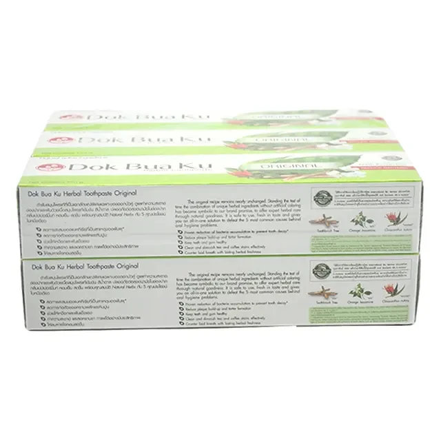 ยาสีฟันสมุนไพรดอกบัวคู่ สูตรดั้งเดิม 150กรัมX6หลอด (Dokbuaku Original Herbal Toothpaste)