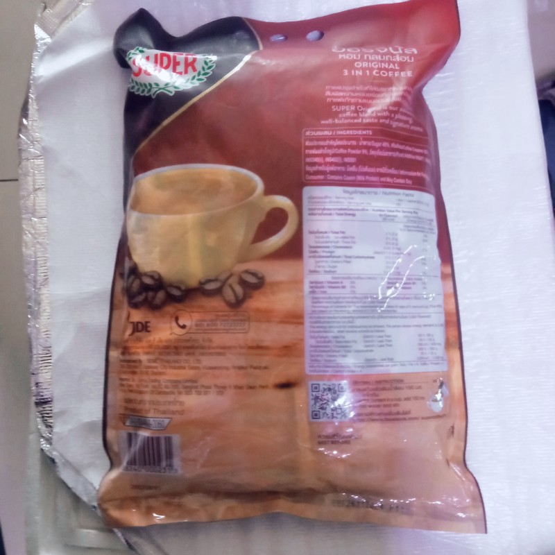 กาแฟปรุงสำเร็จชนิดผงตรา ซุปเปอร์ ออริจินัล เข้ม กลมกล่อม ผลิตจากเมล็ดกาแฟพันธุ์ดี ผ่านการคัดสรรด้วยเครื่องทันสมัยและได้มาตรฐาน รสชาติเข้มกลมกล่อมเต็มรสกาแฟ