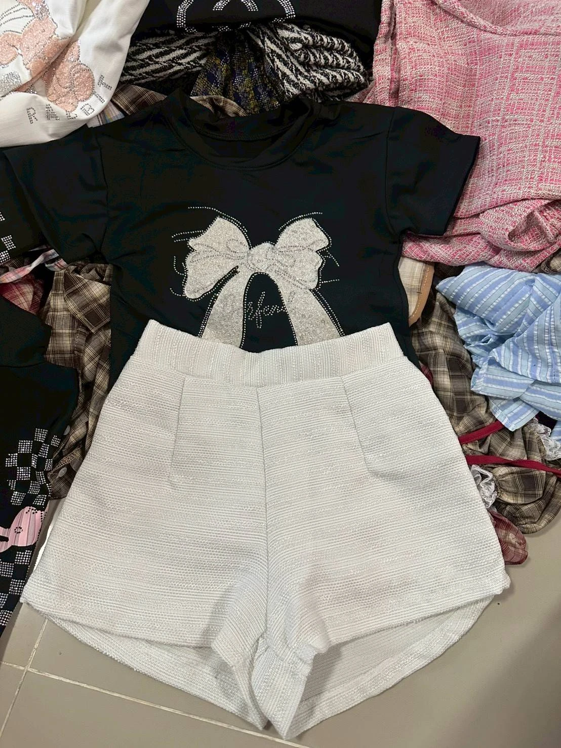 ชุดเซต 2 ชิ้น งานเสื้อ+กางเกงขาสั้นผ้าทอทั้งชุด อก 32-36 เอว 24-32