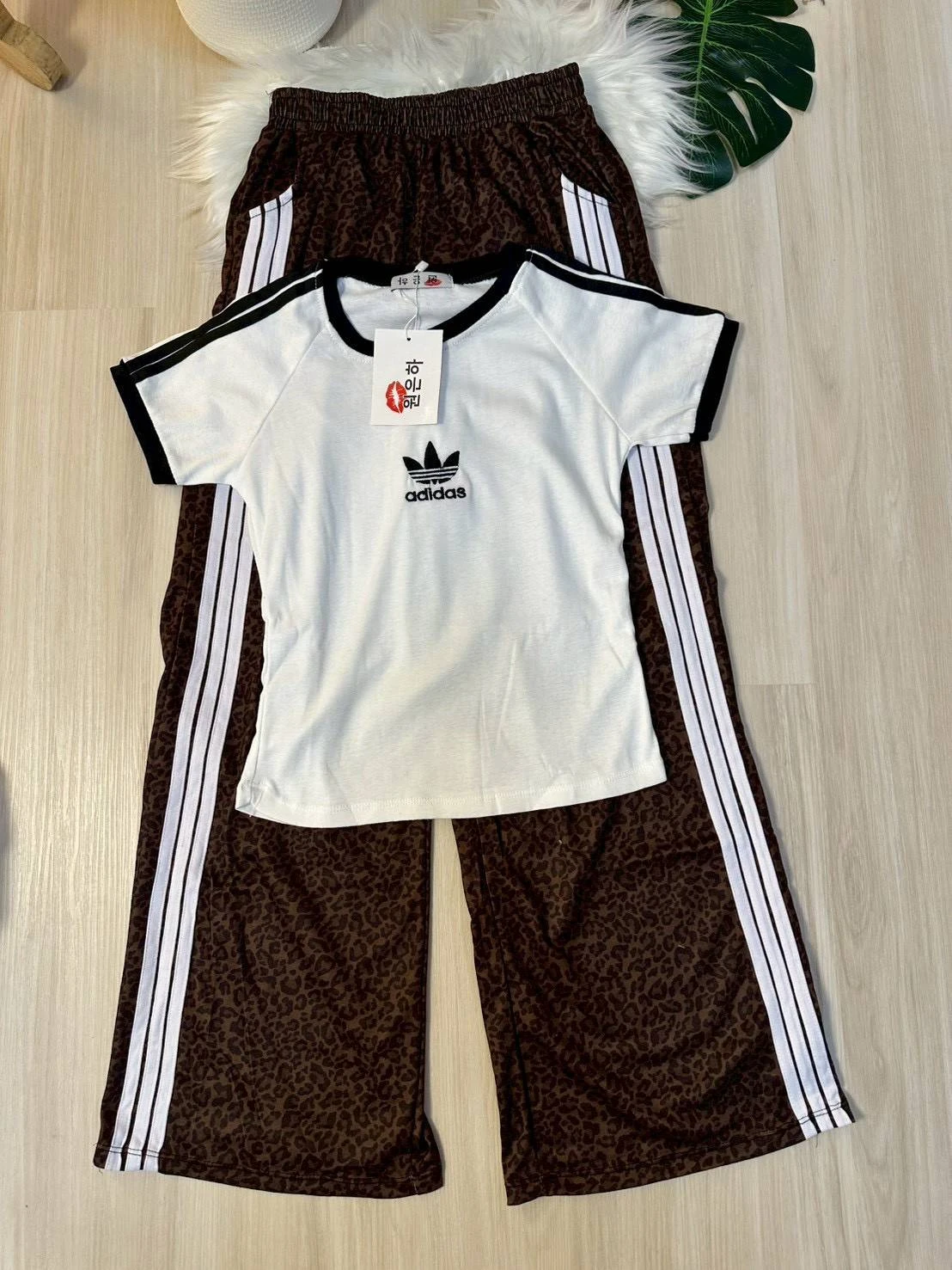 ชุดเซต2 ชิ้น เสื้ออดิดาสแต่งแถบ กางเกงขายาว ลายเสือ