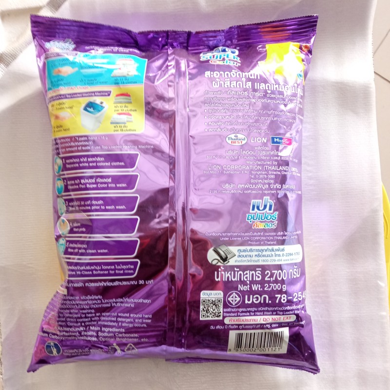 เปาซุปเปอร์คัลเลอร์ สูตรมาตรฐานสำหรับซักมือและซักเครื่องฝาบน ช่วยให้สีผ้าสดใสและดูเหมือนใหม่ กลิ่นหอมละมุน