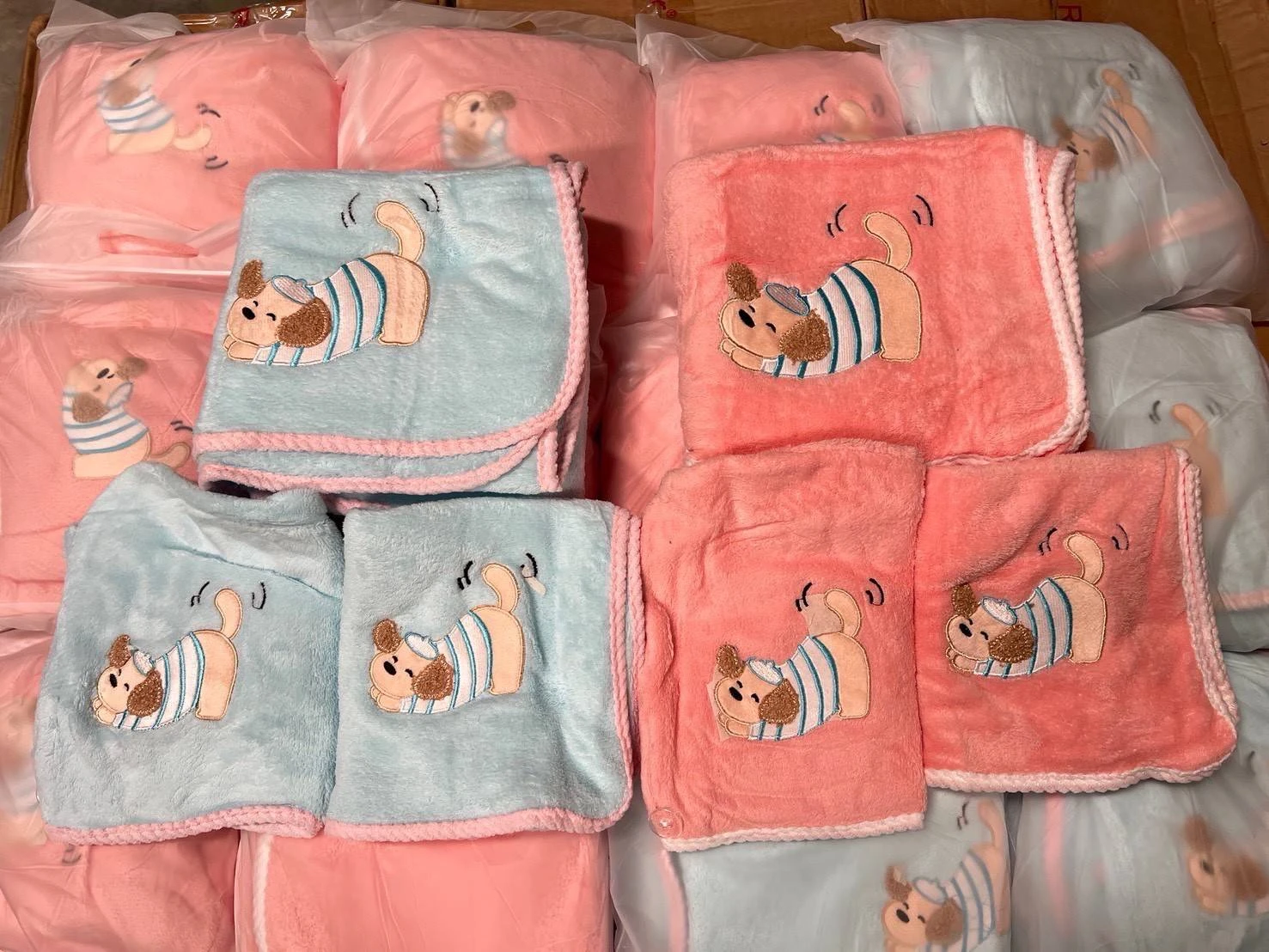 เซตผ้าขนหนู 3 ชิ้น ลายน้องหมา มี 2 สี ฟ้า ชมพู