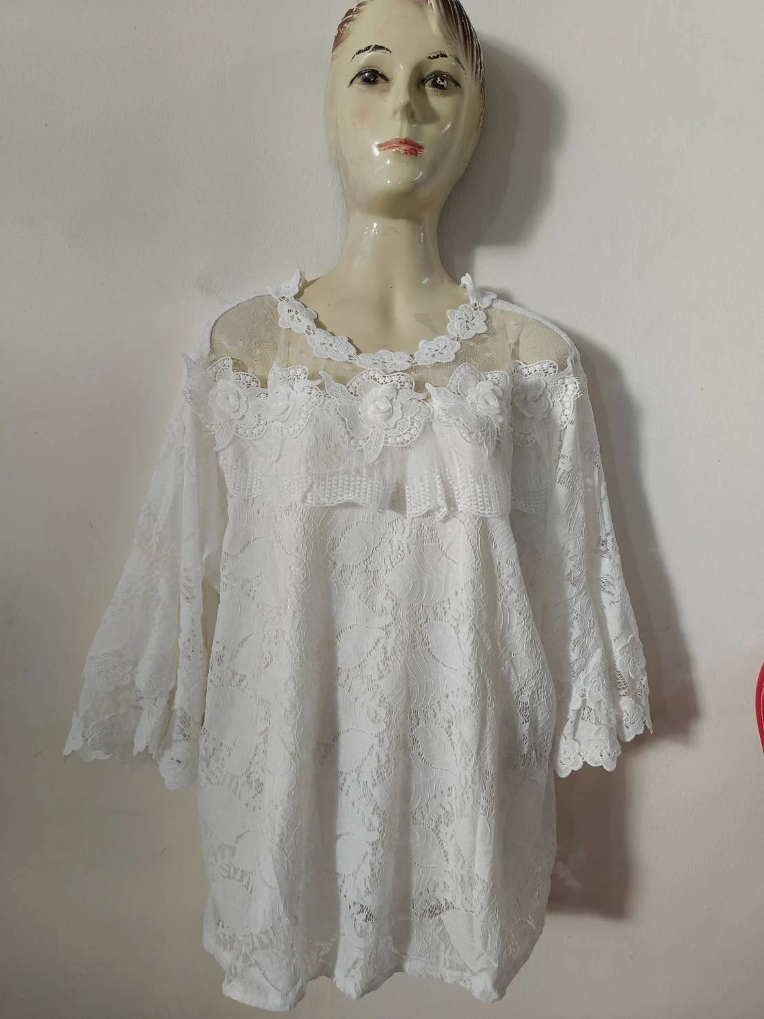 เสื้อลูกไม้ขาวใส่ทำบุญ อก 32-44 ลายที่ 3