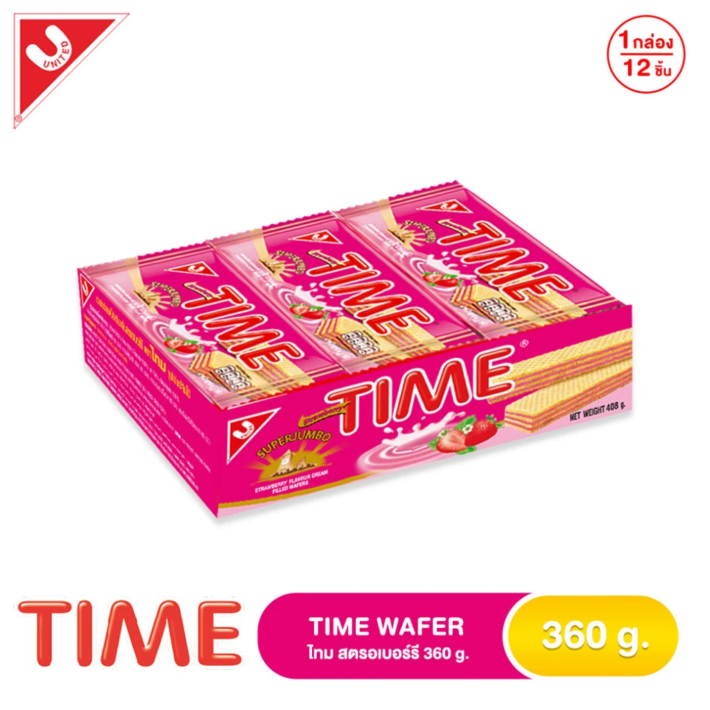 ขนมไทม์เวเฟอร์สตรอเบอรี่ต 35 กรัม 12ชิ้น