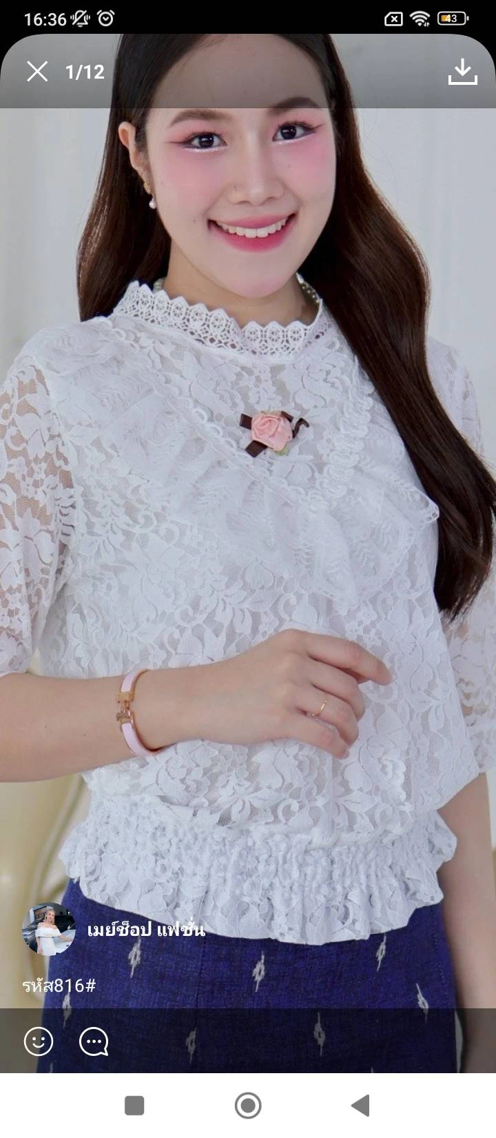 เสื้อคอกลมตกแต่งลูกไม้ อก 36-42 ฟรีไซต์