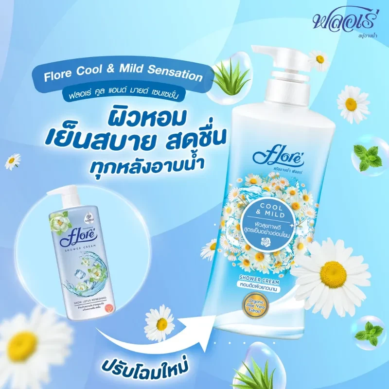 ครีมอาบน้ำฟลอเร่ สีฟ้า 450มล.