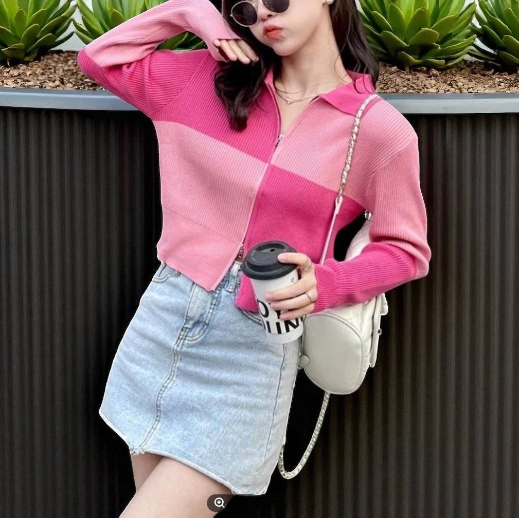 เสื้อไหมพรมคอปกทูโทน รอบอก 46 นิ้ว ยืด 50 ยาว 23 นิ้ว