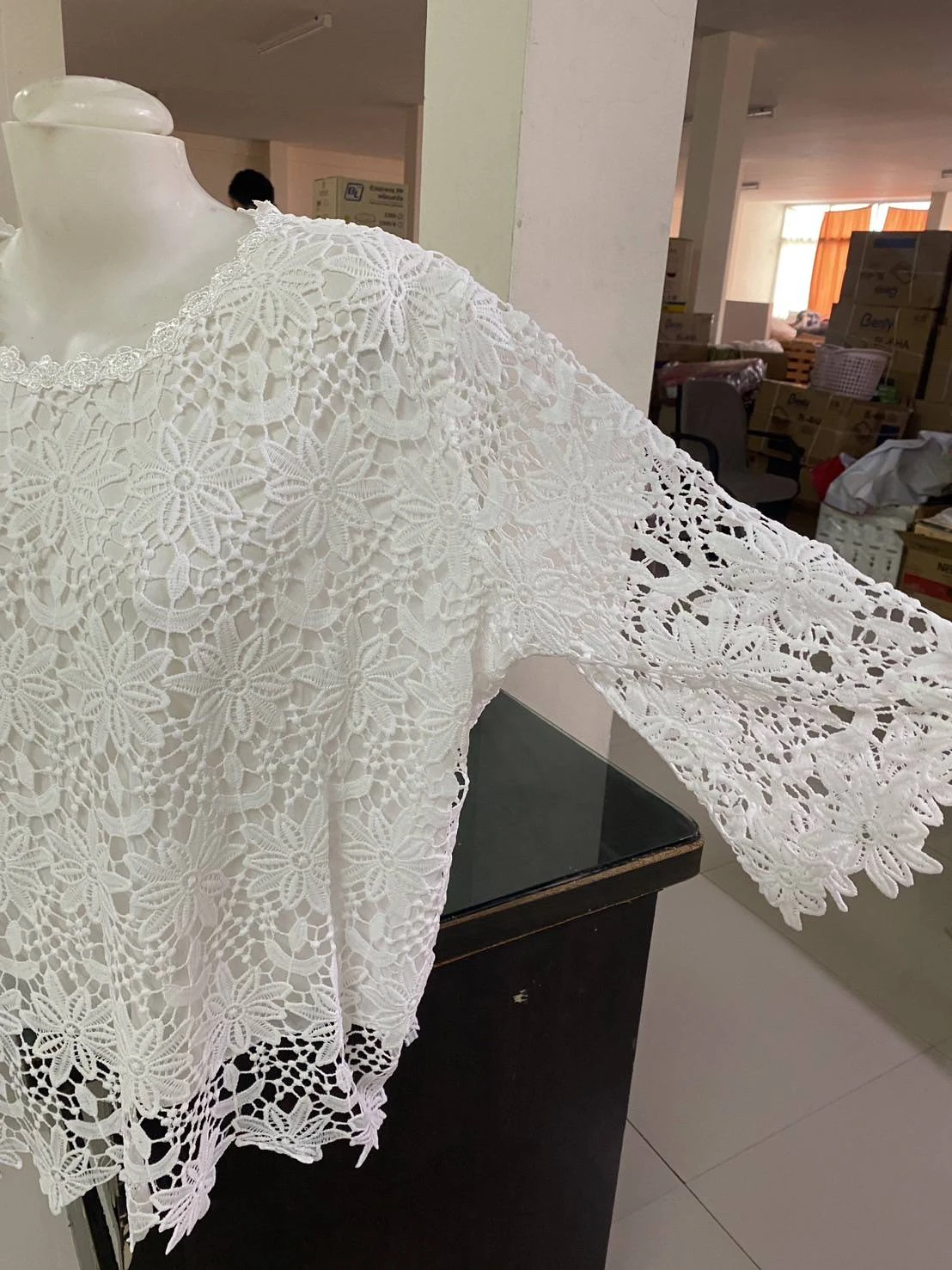 เสื้อลูกไม้คอกลมขาวมีซับใน ใส่ไปทำบุญ งานแต่ง อก 52
