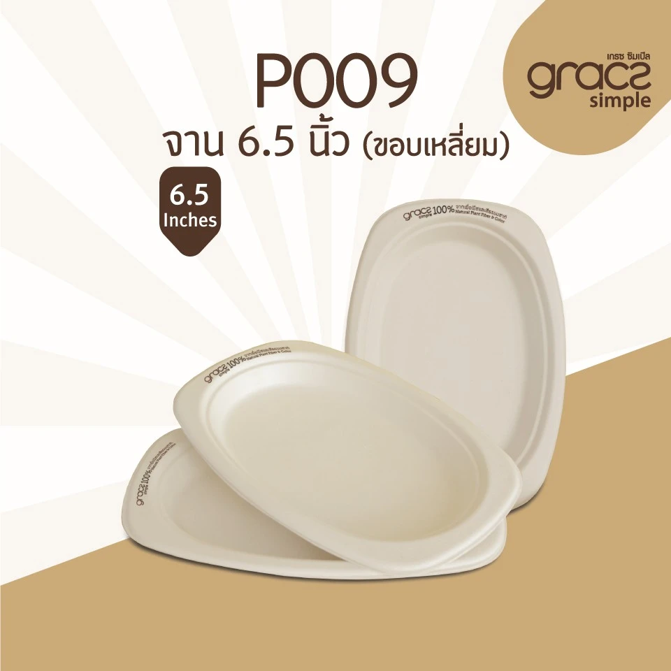 จานวงรี6.5นิ้วบีกรีน 50 ใบ(P009)