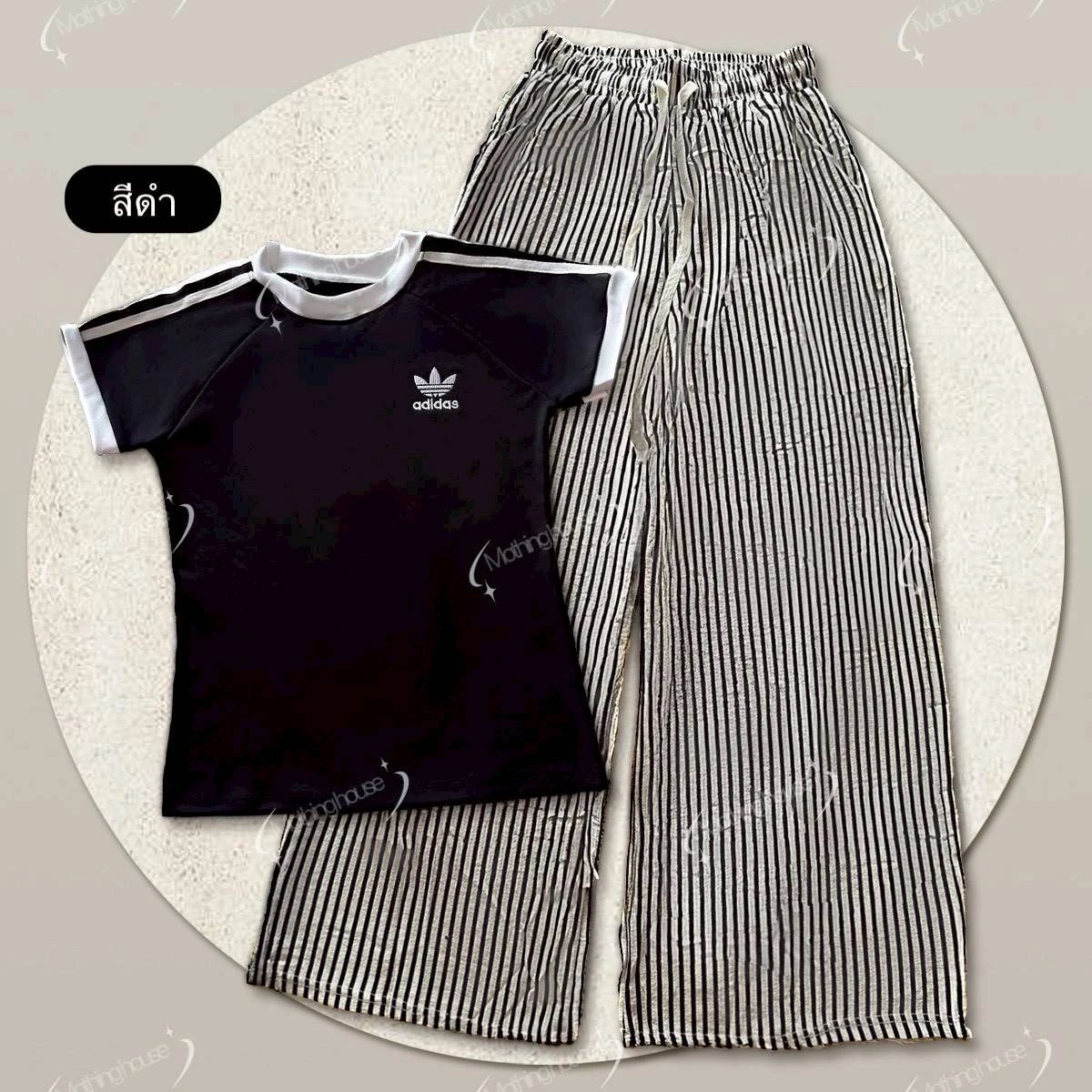 ชุดเซต adidas +กางเกงลาย งานผ้าไม่เงา เอว 24-32 สะโพก 40