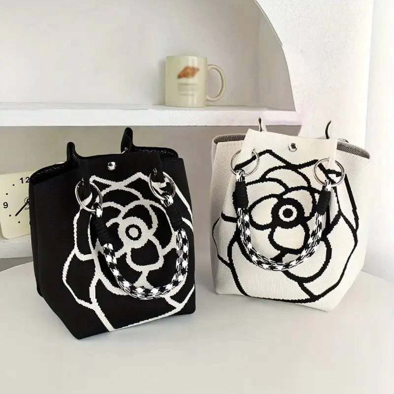 กระเป๋าถือ camellia สไตล์เกาหลี ดีไซน์เชือกถัก