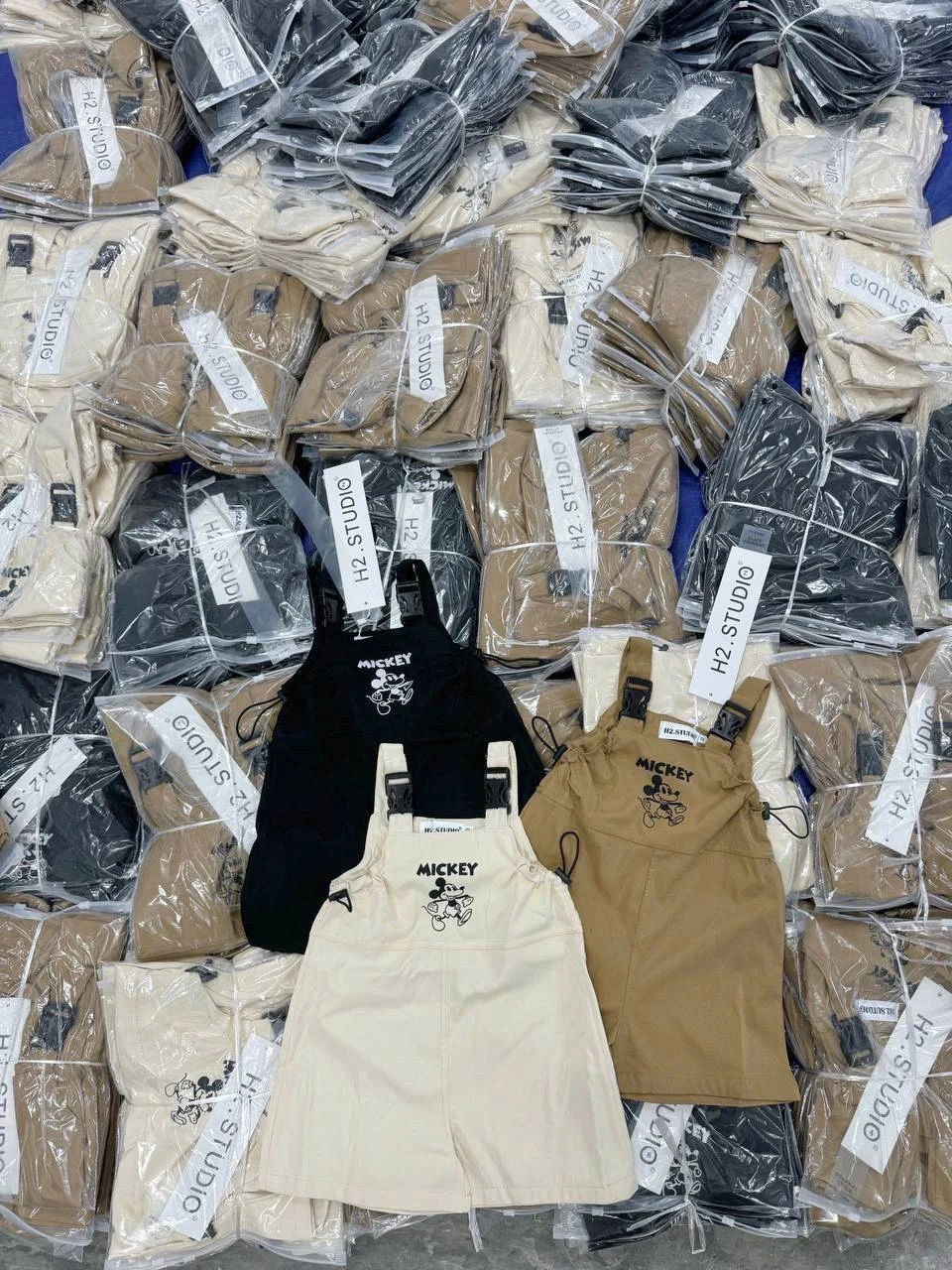 ชุดเซตเอี๊ยม mickey ใส่ได้ทั้งชายหญิง ขนาด 100-150 มี 3 สี ครีม น้ำตาล ดำ