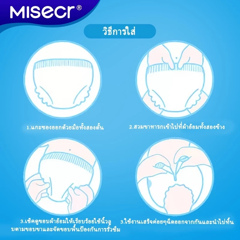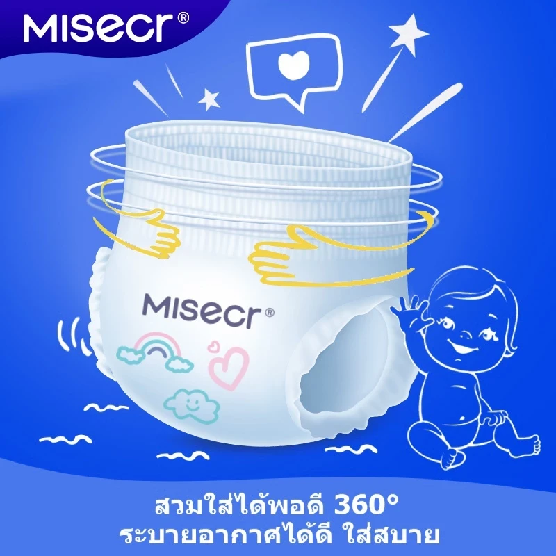 MISECR กางเกง กางเกงผ้าอ้อมเด็กแบบใช้แล้วทิ้งน่ารักทั้งกลางวันและกลางคืนในราคาที่เอื้อมถึง ดูดซับได้นานถึง 8 ชั่วโมง และสามารถใช้ได้ทั้งกลางวันและกลางคืน ด้วยการบุนวมที่ระบายอากาศได้ดี จึงช่วยลดความกังวลเรื่องความชื้นได้ ให้ลูกน้อยของคุณสบายตลอดทั้งวัน