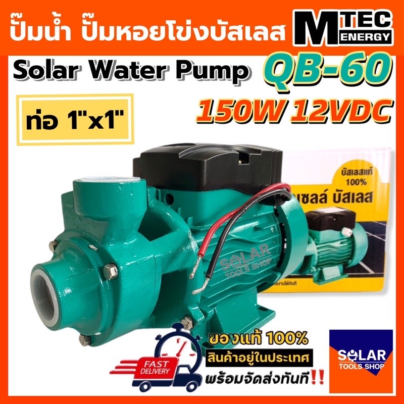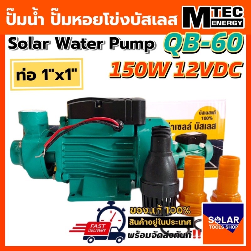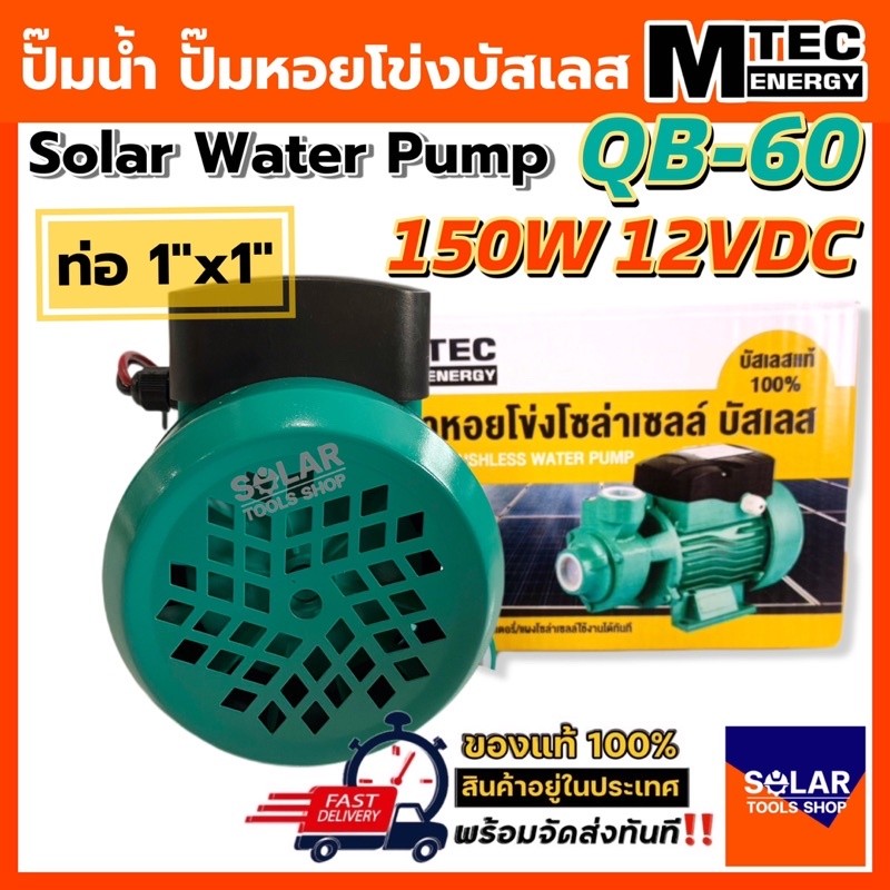 MTEC Solar Water Pump รุ่น QB-60 เป็นปั๊มน้ำระบบไฟ 12VDC กำลังไฟของปั๊มอยู่ที่ 150W มอเตอร์ของตัวปั๊มจะเป็นบัสเลสแท้ มีบอร์ดวงจรควบคุมสั่งการอยู่ภายใน รองรับทั้งการต่อใช้งานจากแผงโซล่าเซลล์ และ แบตเตอรี่