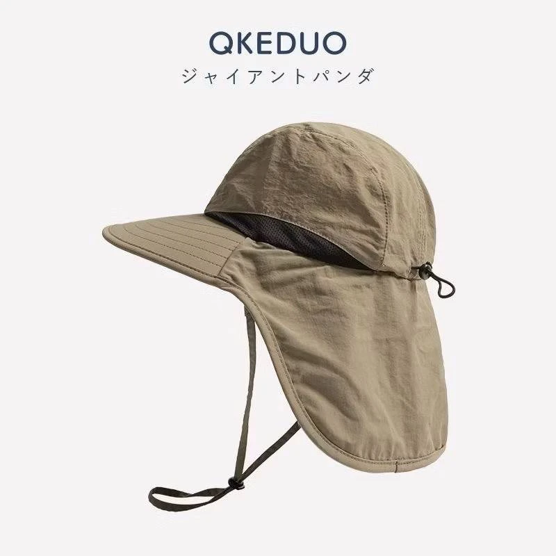 หมวกกันแดด เดินป่า มีสายคล้องคอ ปีกกว้างสีเบจ