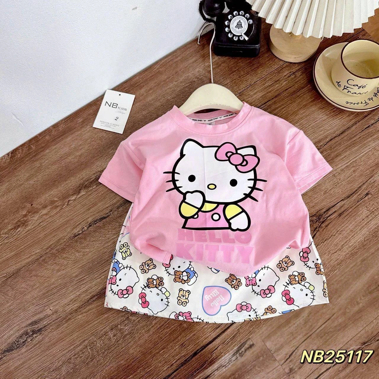 ชุดเซทลูกสาว ลายคิตตี้ เสื้อ+ กระโปรง