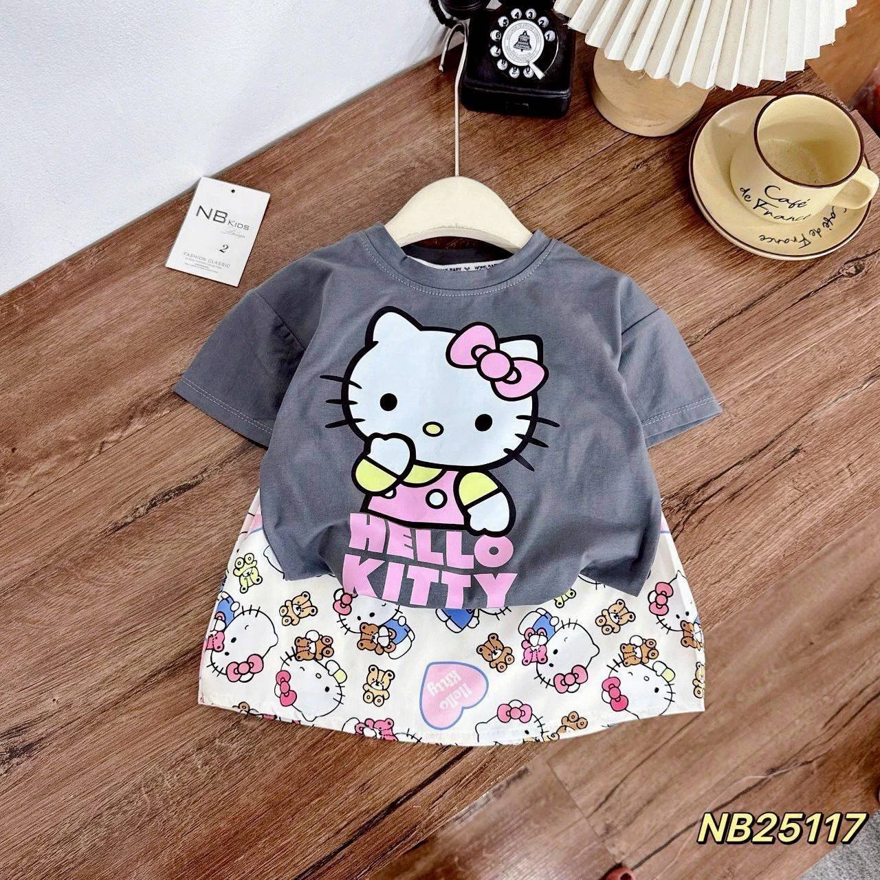 ชุดเซทลูกสาว ลายคิตตี้ เสื้อ+ กระโปรง มี 2 สี ชมพู เทา