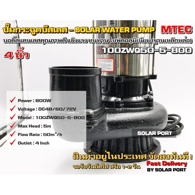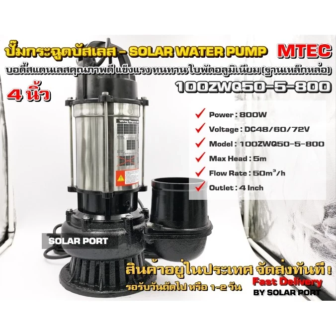 #DC PUMP #Solar Water Pump #ปั๊มบัสเลส #ปั๊มน้ำ #ปั๊มจุ่ม #ปั๊มแช่ #800W #4 นิ้ว #48V #60V #72V #MTEC #Brushless #Solarcell #Solar pump