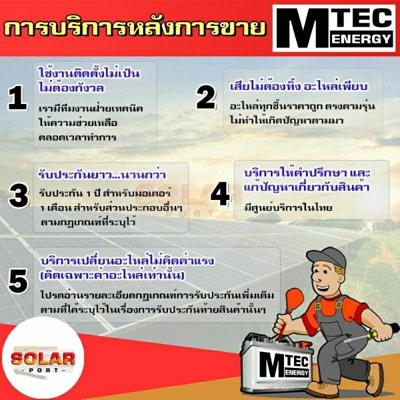 การรับประกัน ปั๊มน้ำบัสเลส MTEC DC48/60/72V 800W รุ่น 100ZWQ50-5-800 มีกฎเกณฑ์ดังนี้